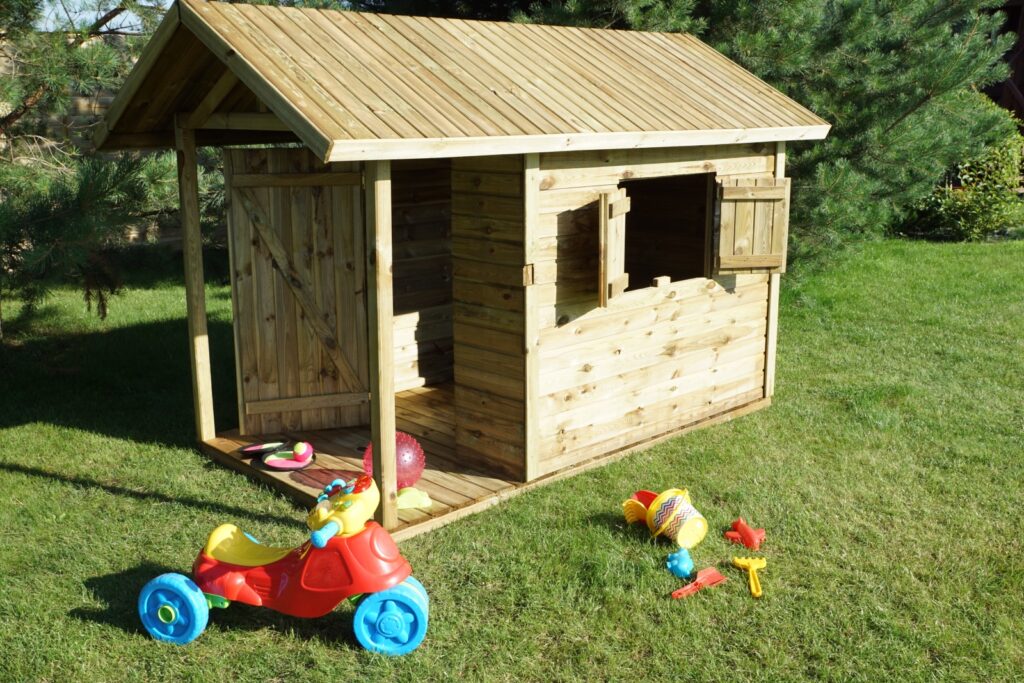 Domek został zaimpregnowany co gwarantuje ochronę drewna przed niesprzyjającymi warunkami atmosferycznymi i pozwala cieszyć się domkiem na świeżym powietrzu przez lata. Ponadto jego atutem jest możliwość pomalowania go na dowolny kolor farbą przeznaczoną do drewna, uwzględniając fantazję dziecka.