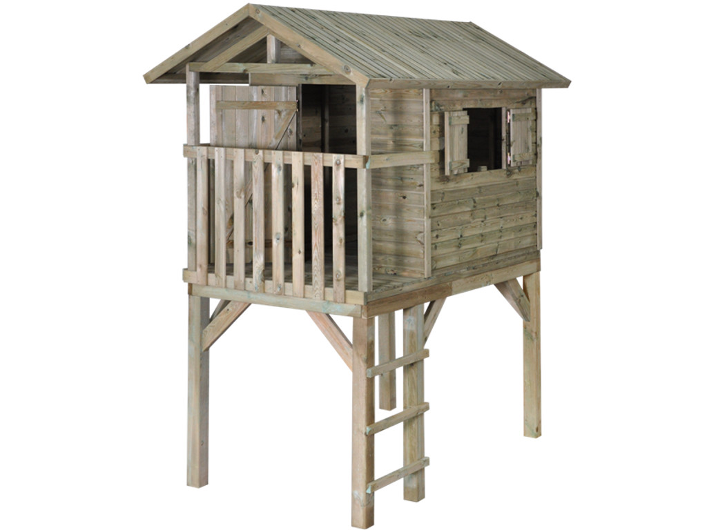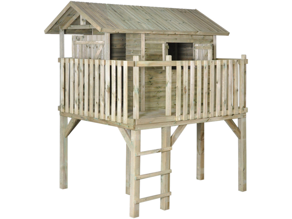 Podstawa do Domku umożliwia ustawienie Domku Jakob na wysokości 140 cm, co dodatkowo uatrakcyjnia zabawę. Domek z podstawą posiada balkon oraz miejsce do montażu zjeżdżalni. Całość stanowi stabilną konstrukcję wzbogaconą o barierką zabezpieczającą.