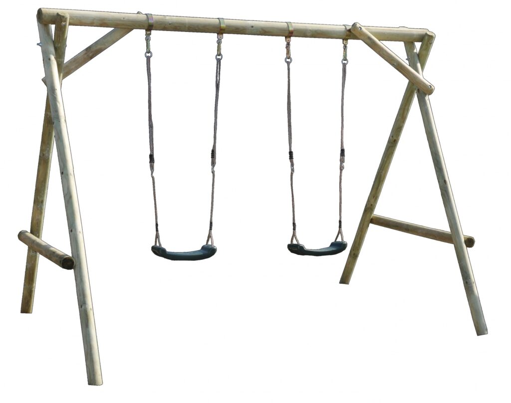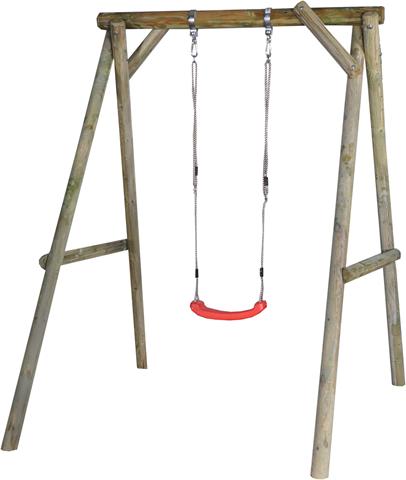 Huśtawka została wykonana z drewna sosnowego impregnowanego ciśnieniowo, co sprawia, że konstrukcja jest trwała i odporna na niekorzystne warunki atmosferyczne i pozwala na pomalowanie huśtawki na dowolny kolor farbą do drewna.