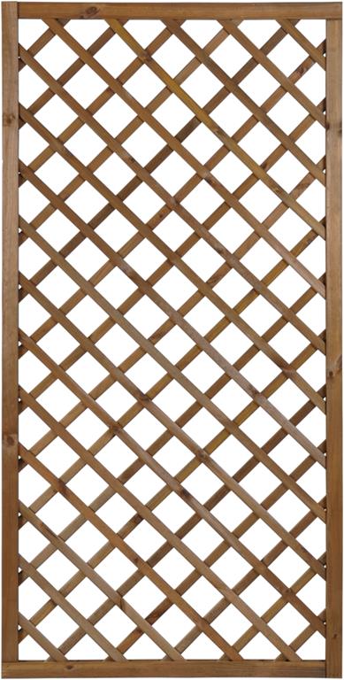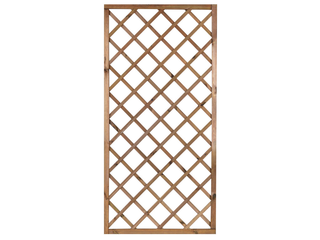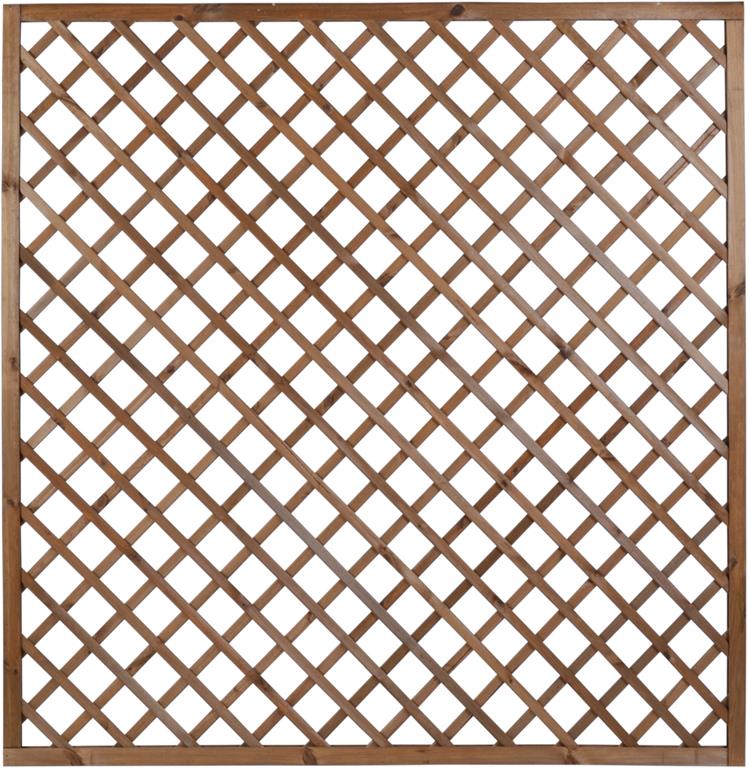 Kratka DIAGONALNA R34 PIA prosta 90×180 BRĄZ stanowi element architektury ogrodowej służący do aranżacji ogrodu, jak również do stworzenia niepowtarzalnego otoczenia wokół domu. Jej połączenie z pnącymi roślinami daje możliwość wykonania wielu pięknych i eleganckich kompozycji. Kratka stanowi również doskonałą podporę dla roślin, wspomagając tym samym ich wzrost. Dzięki niej jesteśmy w stanie samodzielnie wykreować wymarzoną  strefę wypoczynku i relaksu. Ażurowa konstrukcja wraz z roślinami zapewni przyjemny cień oraz kameralne otoczenie, jednocześnie umożliwiając stały dostęp świeżego powietrza. Kratkę można także zamontować na balkonie w celu zachowania większej prywatności, a pnące kwiaty dodatkowo go upiększą. Drewno zostało zaimpregnowane ciśnieniowo, co gwarantuje ochronę  przed działaniem niesprzyjających warunków atmosferycznych, a także przed szkodnikami i grzybami,  jednocześnie wybarwia drewno  ciepłym brązowym kolorem.