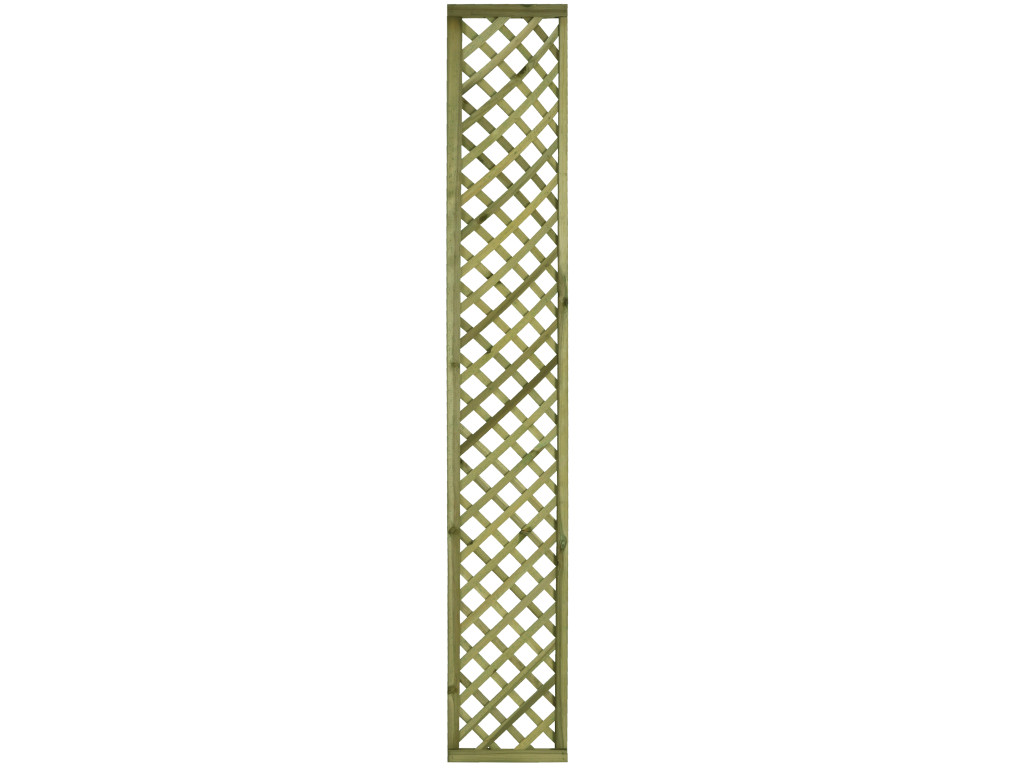 Kratka DIAGONALNA R34 prosta 90×180 stanowi element architektury ogrodowej służący do aranżacji ogrodu, jak również do stworzenia niepowtarzalnego otoczenia wokół domu. Jej połączenie z pnącymi roślinami daje możliwość wykonania wielu pięknych i eleganckich kompozycji. Kratka stanowi również doskonałą podporę dla roślin, wspomagając tym samym ich wzrost. Dzięki niej jesteśmy w stanie samodzielnie wykreować wymarzoną  strefę wypoczynku i relaksu. Ażurowa konstrukcja wraz z roślinami zapewni przyjemny cień oraz kameralne otoczenie, jednocześnie umożliwiając stały dostęp świeżego powietrza. Kratkę można także zamontować na balkonie w celu zachowania większej prywatności, a pnące kwiaty dodatkowo go upiększą. Drewno zostało zaimpregnowane ciśnieniowo, co gwarantuje ochronę  przed działaniem niesprzyjających warunków atmosferycznych, a także przed szkodnikami i grzybami.  Dodatkowym atutem jest możliwość pomalowania kratki na dowolny kolor.