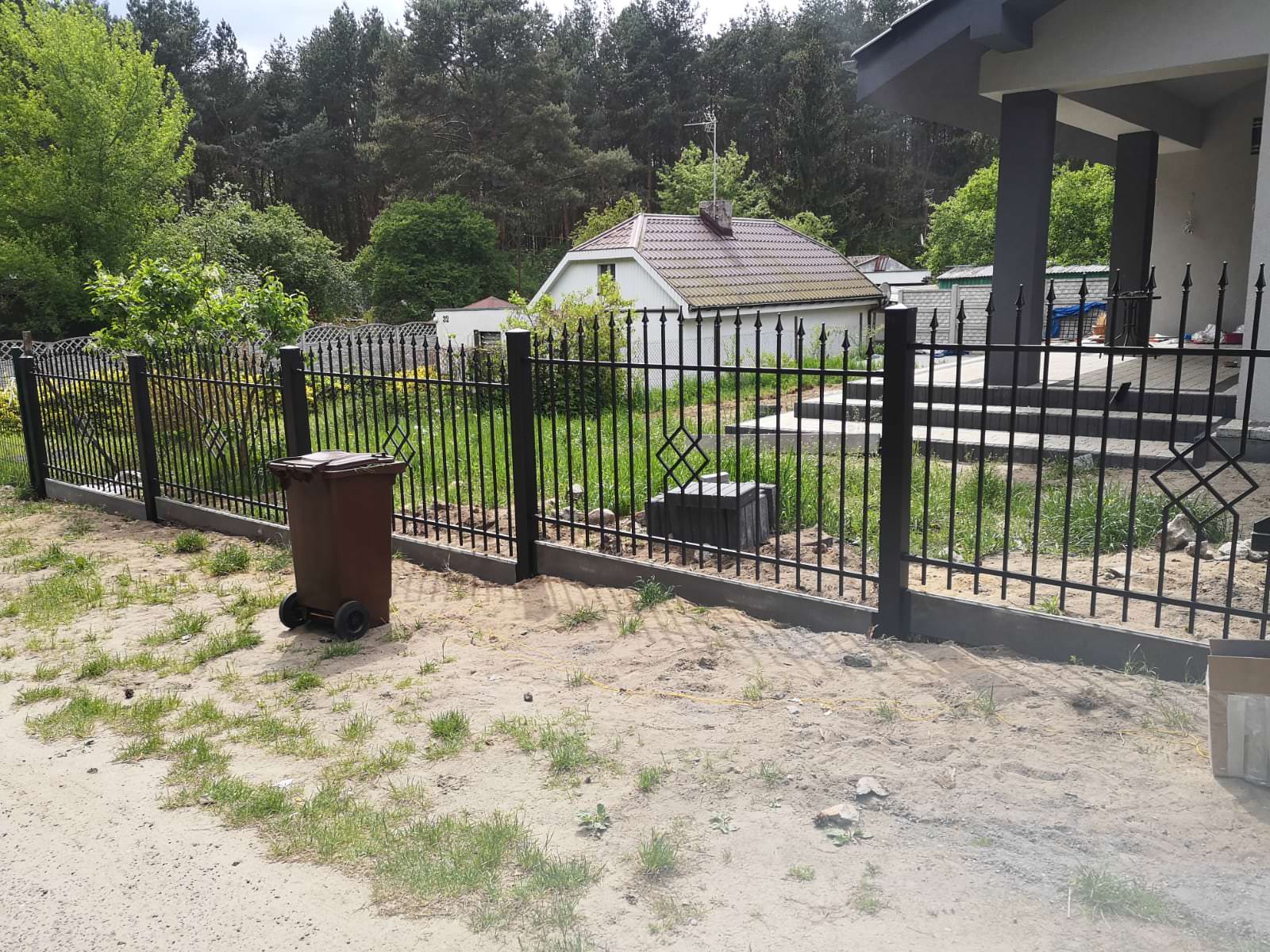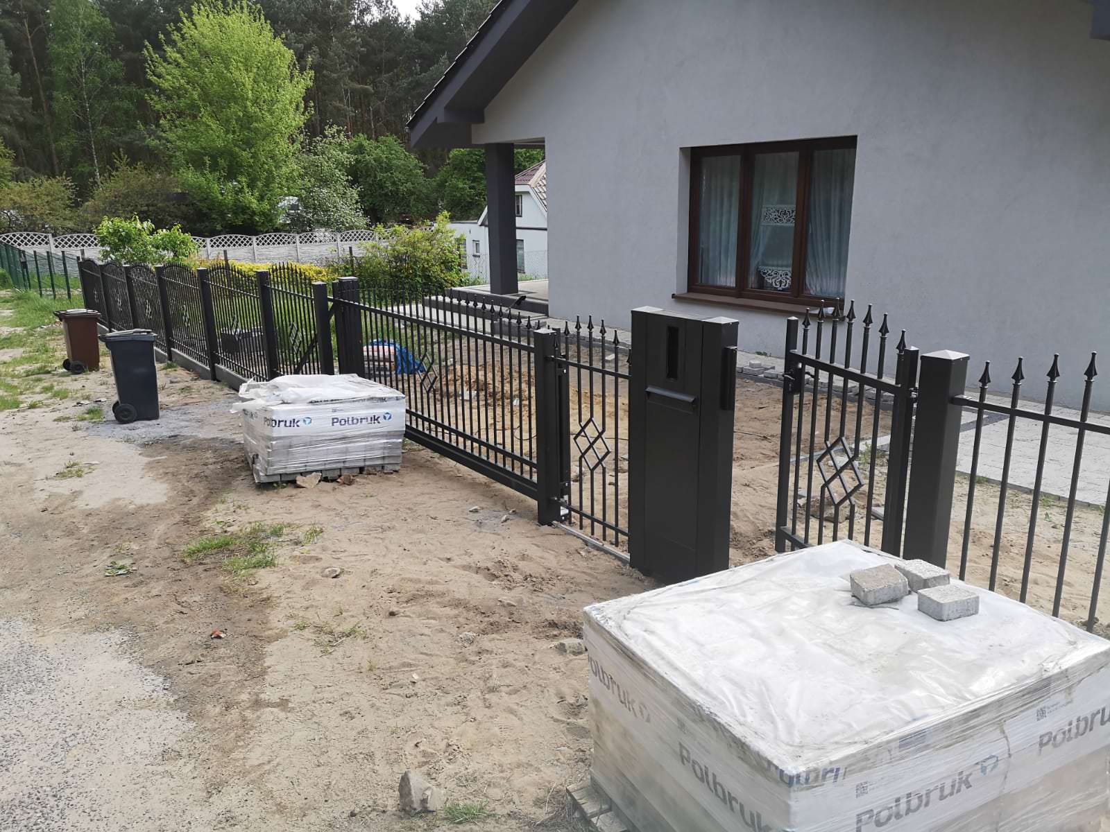 Ogrodzenie frontowe – montaż zamówionego ogrodzenia, pełne wraz z bramą i furtką.