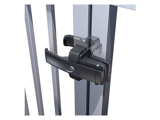 Rygiel samozatrzaskowy dwustronny do bramy dwuskrzydłowej LLMLDBT