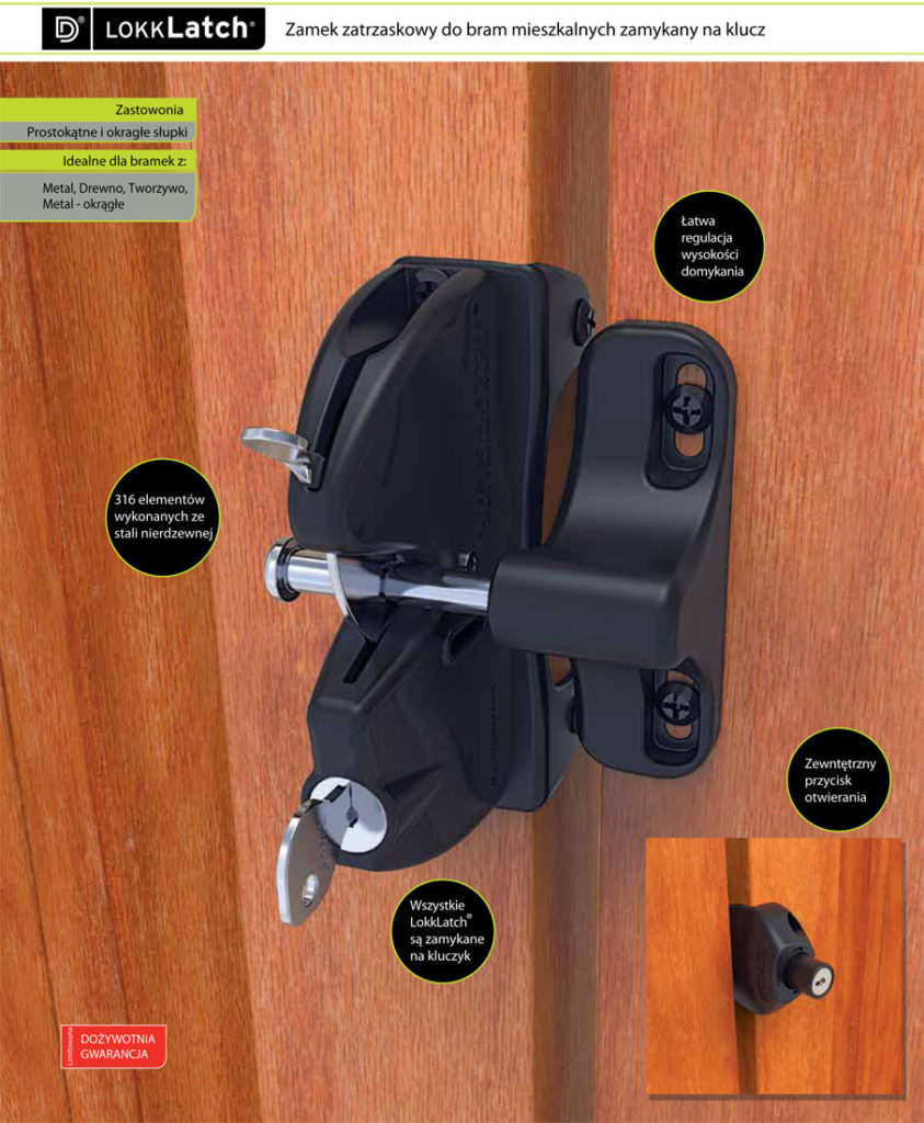 Skobel do furtki samozatrzaskowy na zamek z kluczykiem LLAA