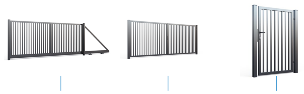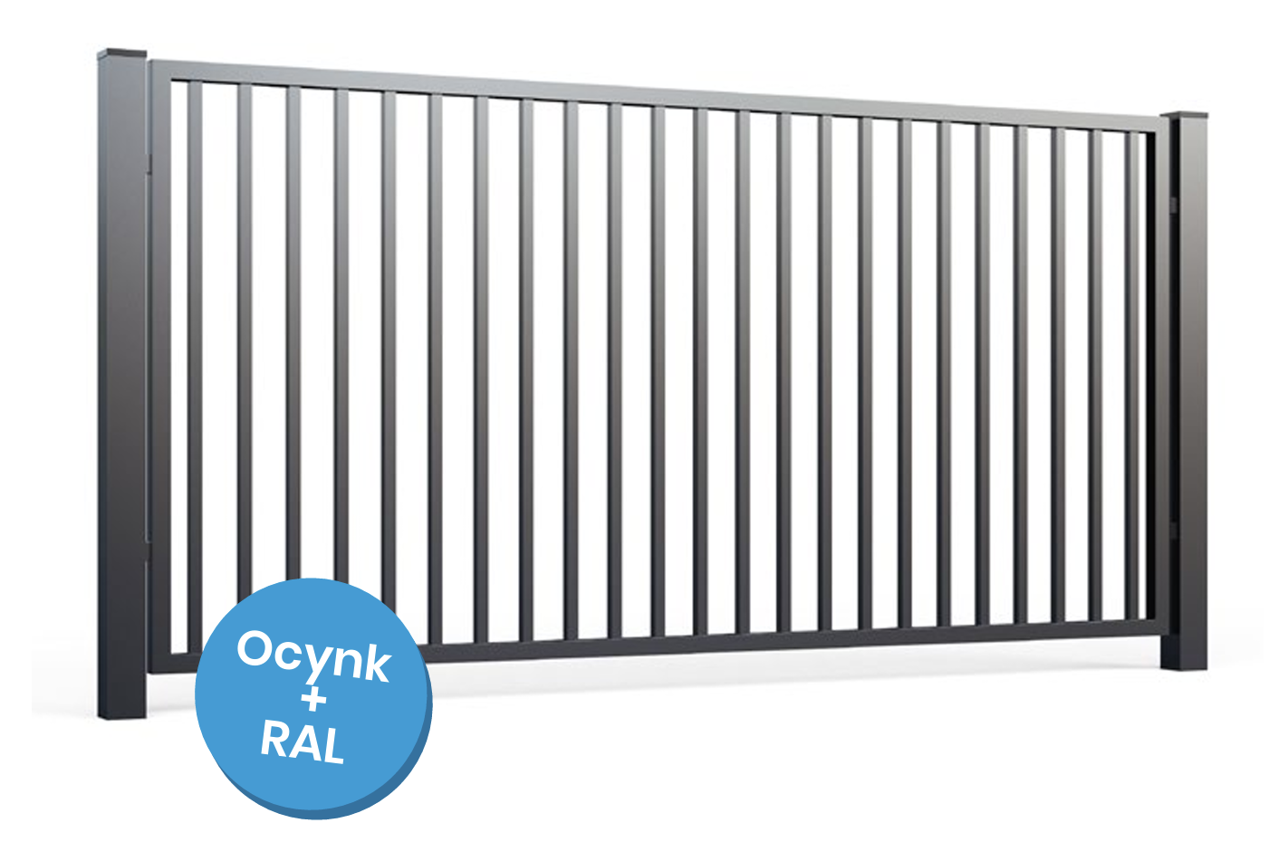 - Wypełnienie: Profil pionowy 25×25 mm; rama 60×40 mm; przerwa między profilami ok. 80 mm; profil bramowy (dolny w bramie przesuwnej) 80×80 mm.
